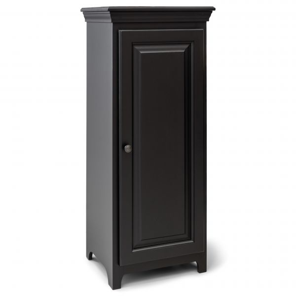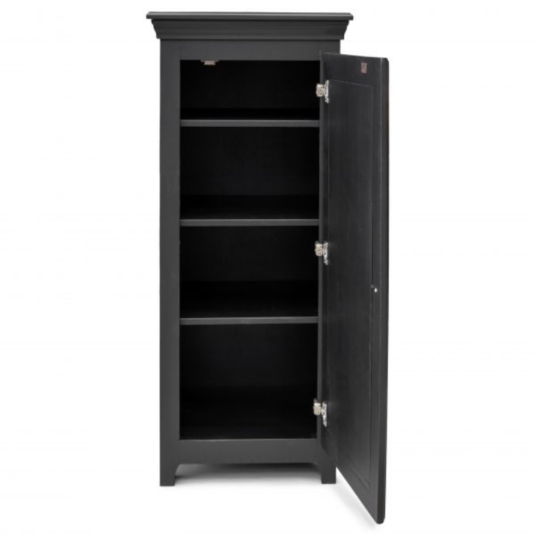 This cabinet is perfect for any room in your home in need of added storage space. The door opens to reveal three adjustable shelves that create the ideal space for storing books, DVDs, games, or anything you can think of neatly out of sight. The framed door front and block feet create a handsome look that you are bound to love. Shown in store with Black finish.