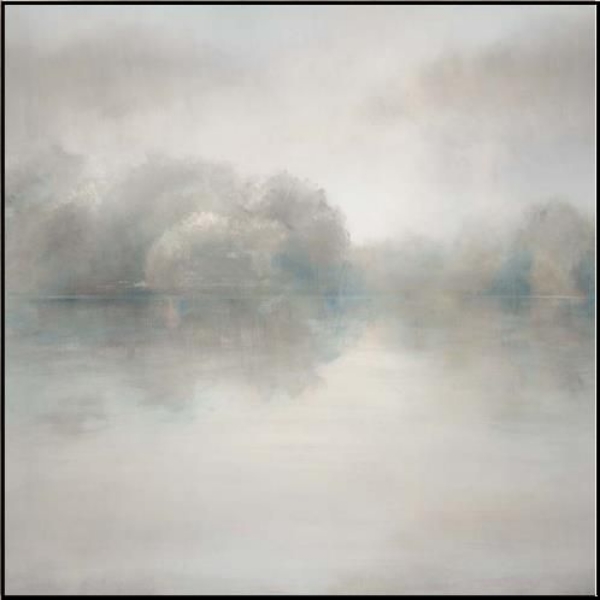 The Wish You Were Here Framed Print uses soft neutral hues of gray and blue to depict a serene landscape. The print is encased in a distressed silver frame and applied with a brushed gel to add texture.