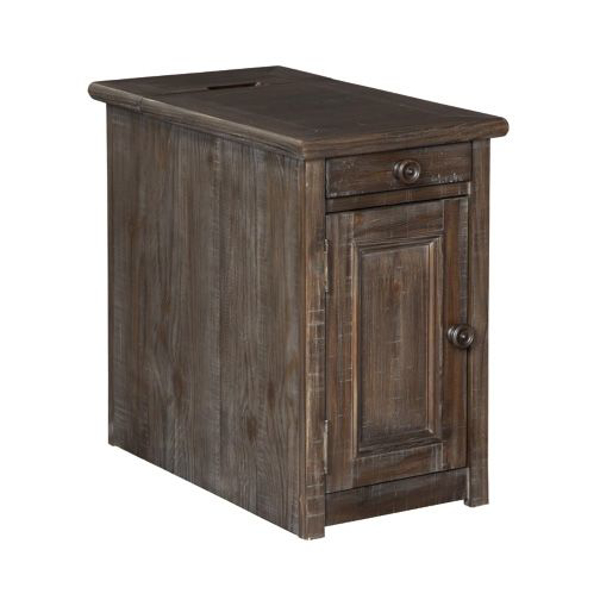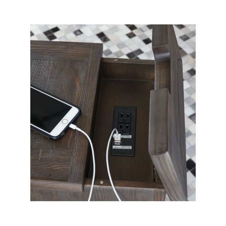 Inspired by heavy and hearty lodge-style furnishings from days gone by, this chairside end table brings the past brilliantly into the present. Distinctive details include robust mouldings and a distressed aged pine color finish with light wire-brushed texture that’s pure artistry. Addition of cleverly placed AC power and UBS plug-ins makes this yesteryear-inspired end table made for the here and now.