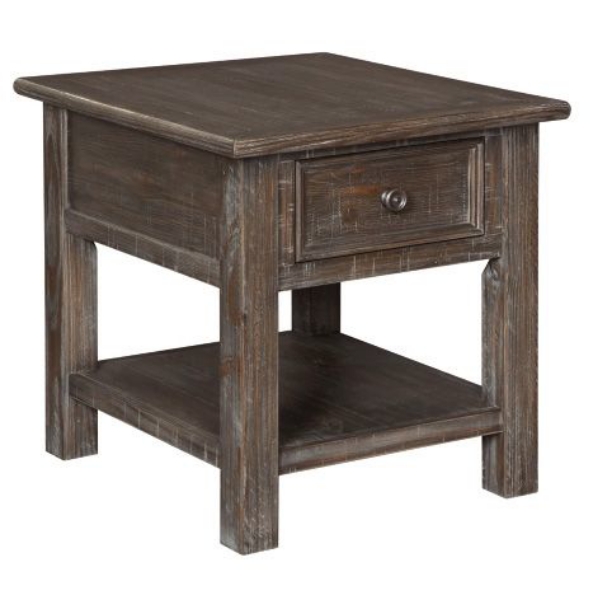 Inspired by heavy and hearty lodge-style furnishings from days gone by, this end table brings the past brilliantly into the present. Distinctive details include a stocky, linear profile, plank-effect display shelf and a distressed aged pine color finish with light wire-brushed texture that’s pure artistry.